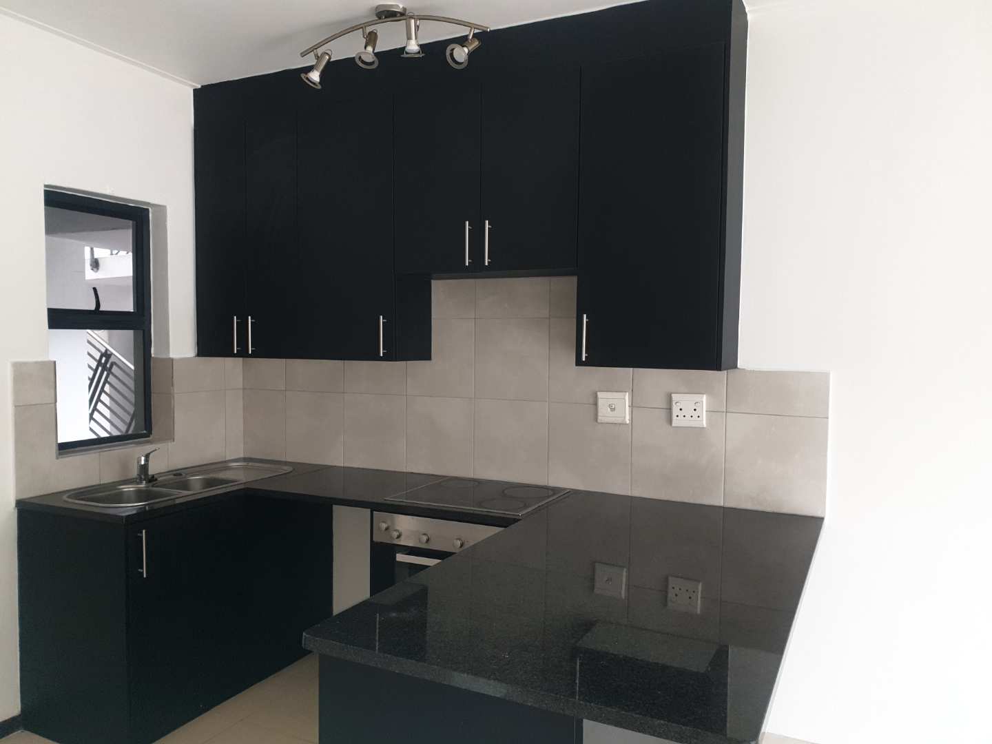 One spacious bedroom with built-in cupboards, tiled floors, and aluminium framed windows. One bathroom with a full bath, glass door and shower head over the bath for quick splash and cool moments. The vanity cabinet is modern and tasteful, providing space for toiletries.