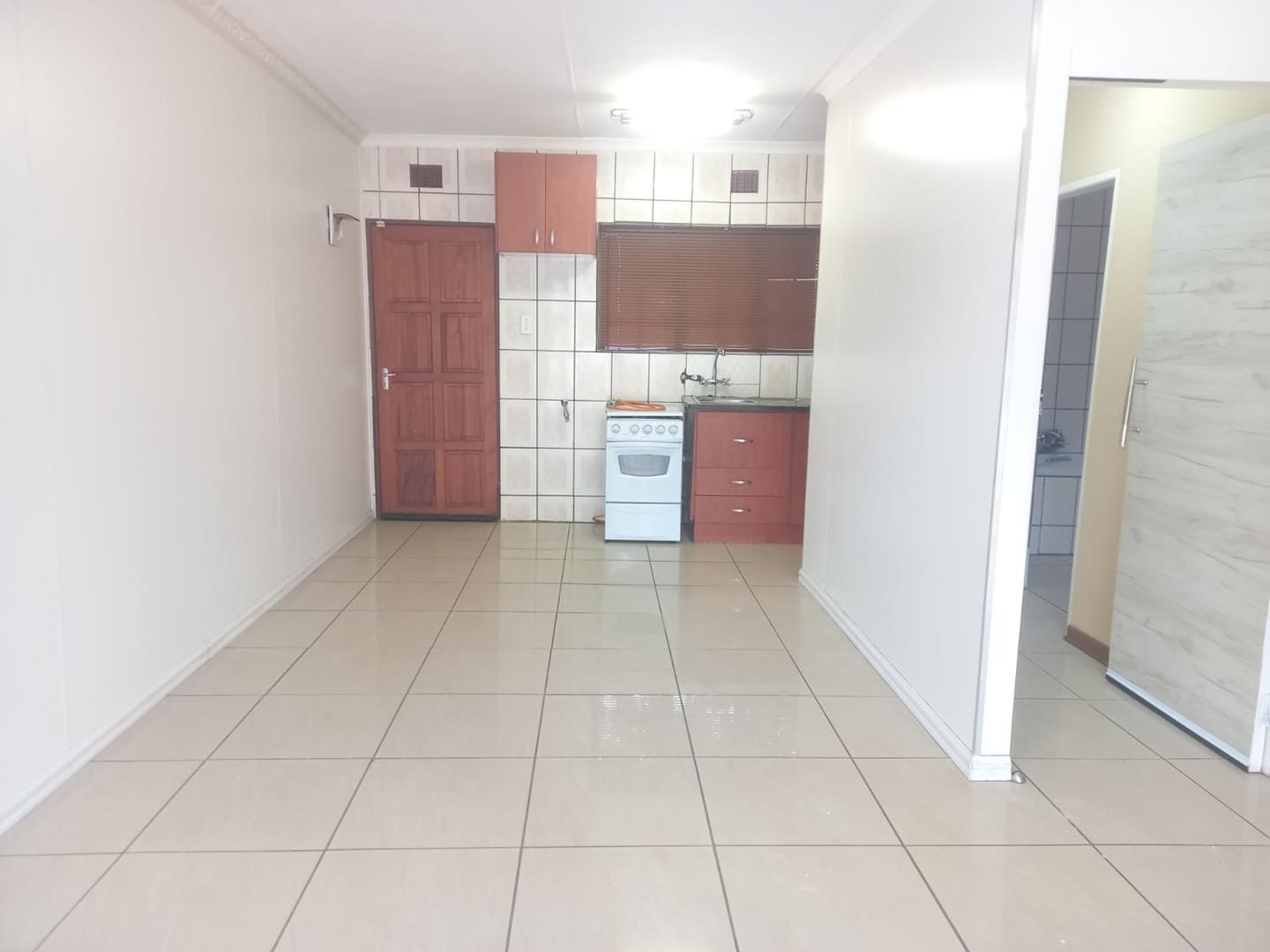 This 1-bedroom cottage in Cresta has two access points, either through the glass sliding door into the lounge or through the back kitchen door. The interior is fully tiled and features an open-plan lounge and kitchen with a gas stove and a washing machine connection. The bedroom has built-in cupboards and blinds and fits a double or queen-size bed. The full bathroom includes both a bath and a shower.
