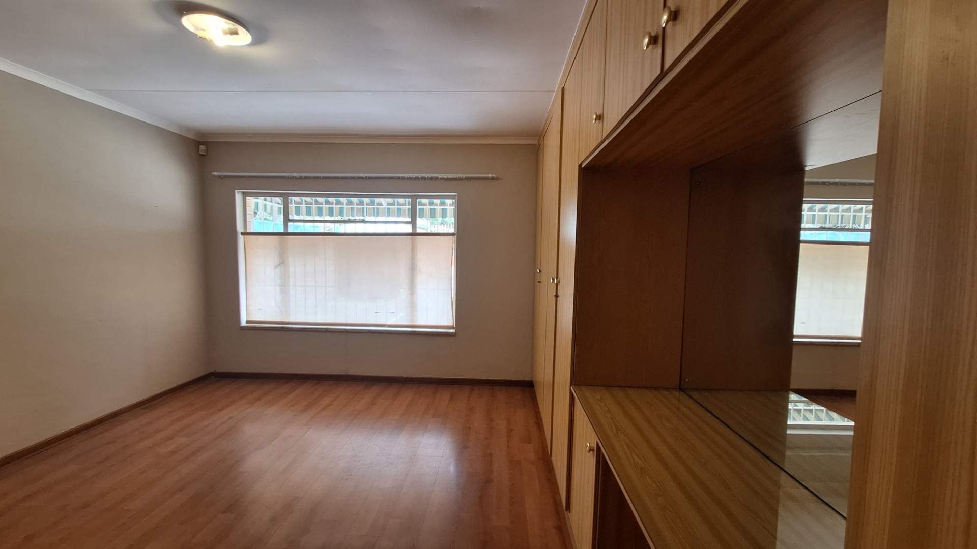 The bathroom has recently been renovated and is fitted with a shower. The bedroom is spacious and has a very good amount of cupboard space. The bedroom can fit an extra length king size bed plus pedestals. The property is well-maintained and secure.