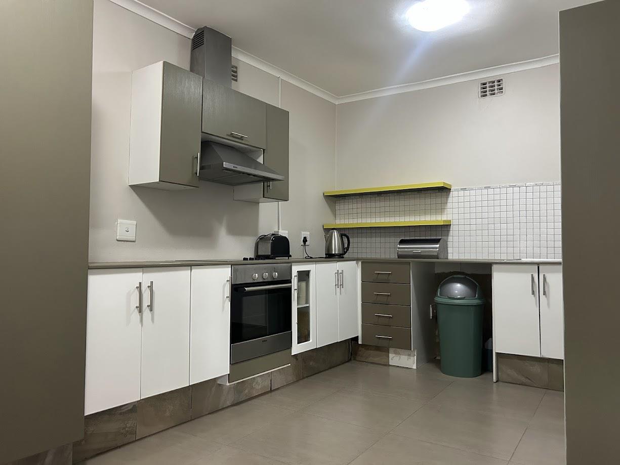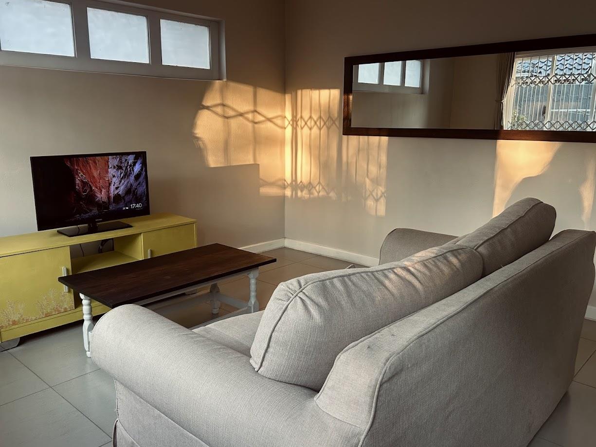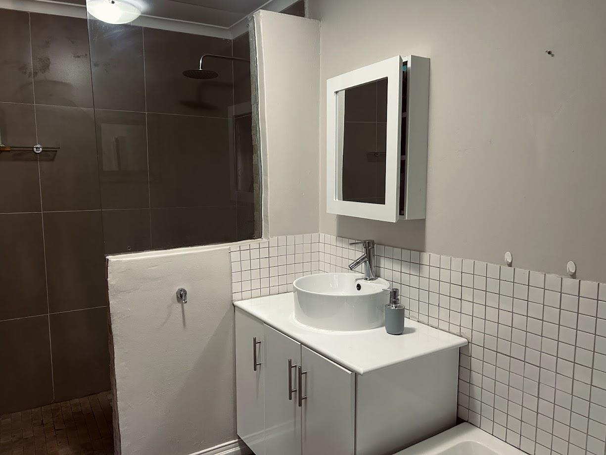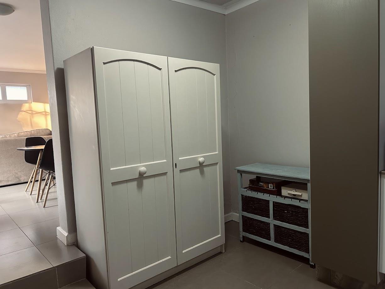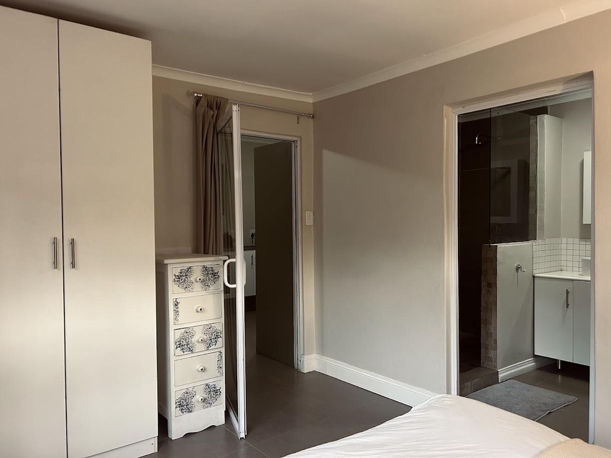 The bedroom offers generous cupboard space and an en-suite bathroom equipped with both a walk-in shower and a bath. The flat is connected to the main house’s solar system with lithium-ion backup batteries, ensuring uninterrupted power during load shedding. It also has its own prepaid electricity meter. Fibre internet (uncapped at 500 Mb/s) is available, along with a connection point for DSTV (subscription at the tenant’s own cost).
