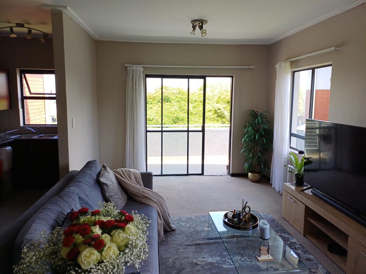 Spacious and modern Open Plan Kitchen with space for 2 water appliances and single door fridge. Open Plan Lounge with sliding door to balcony overlooking golf estate. 2 Bedrooms tiled with built in cupboards. En-suite bathroom with bath. Second Bathroom with shower.