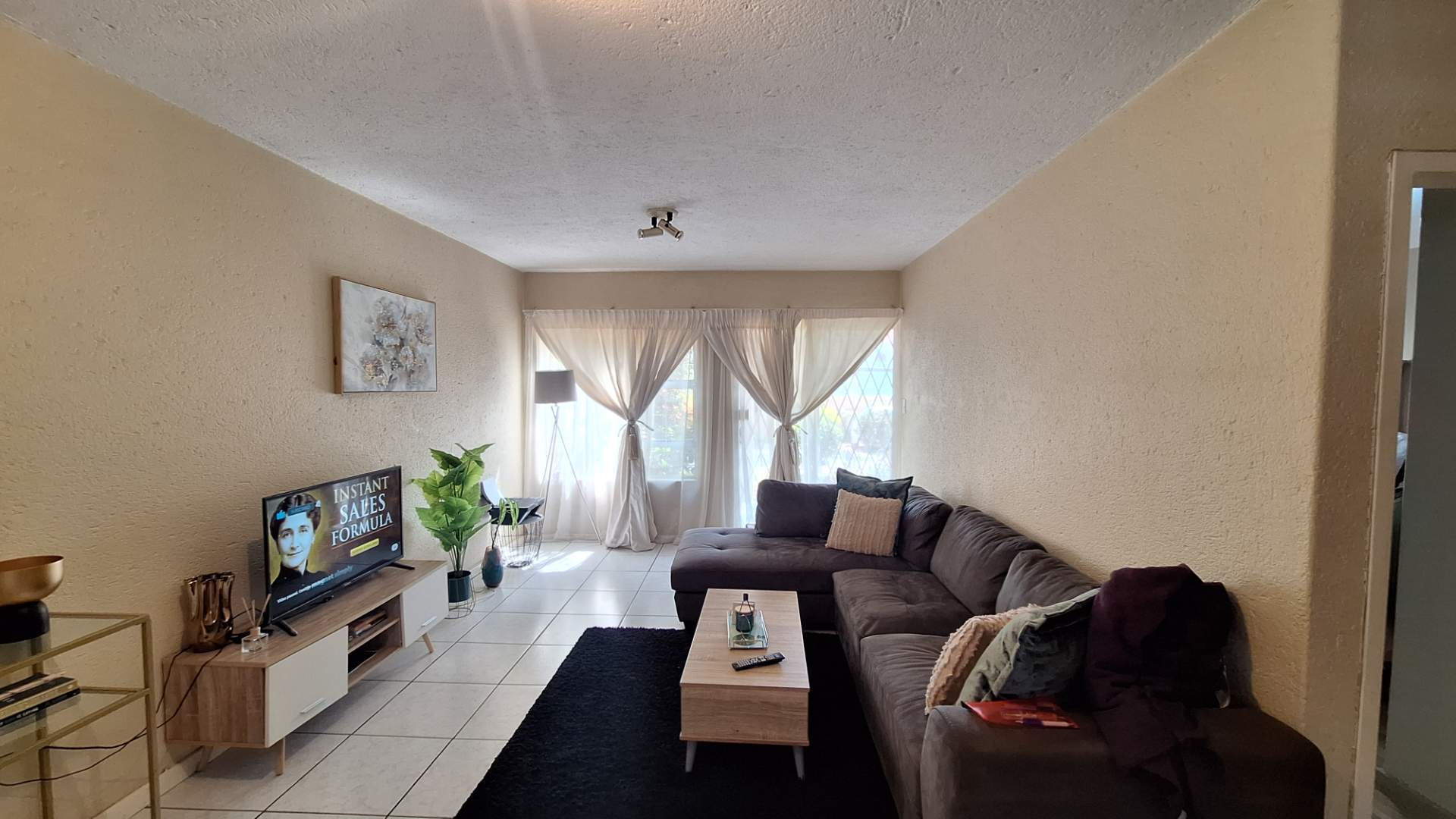 This well-maintained ground floor unit offers 2 bedrooms and 1 bathroom. The open-plan kitchen and lounge are fully tiled. The kitchen includes an electric oven and hob, fitted blinds, space for a single-door fridge, and one water appliance.