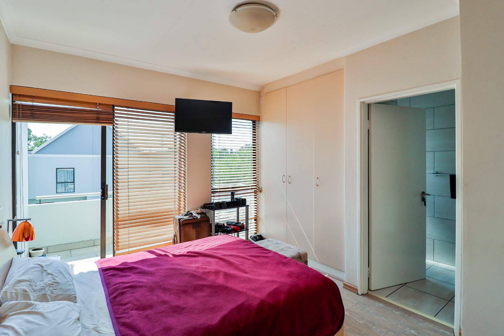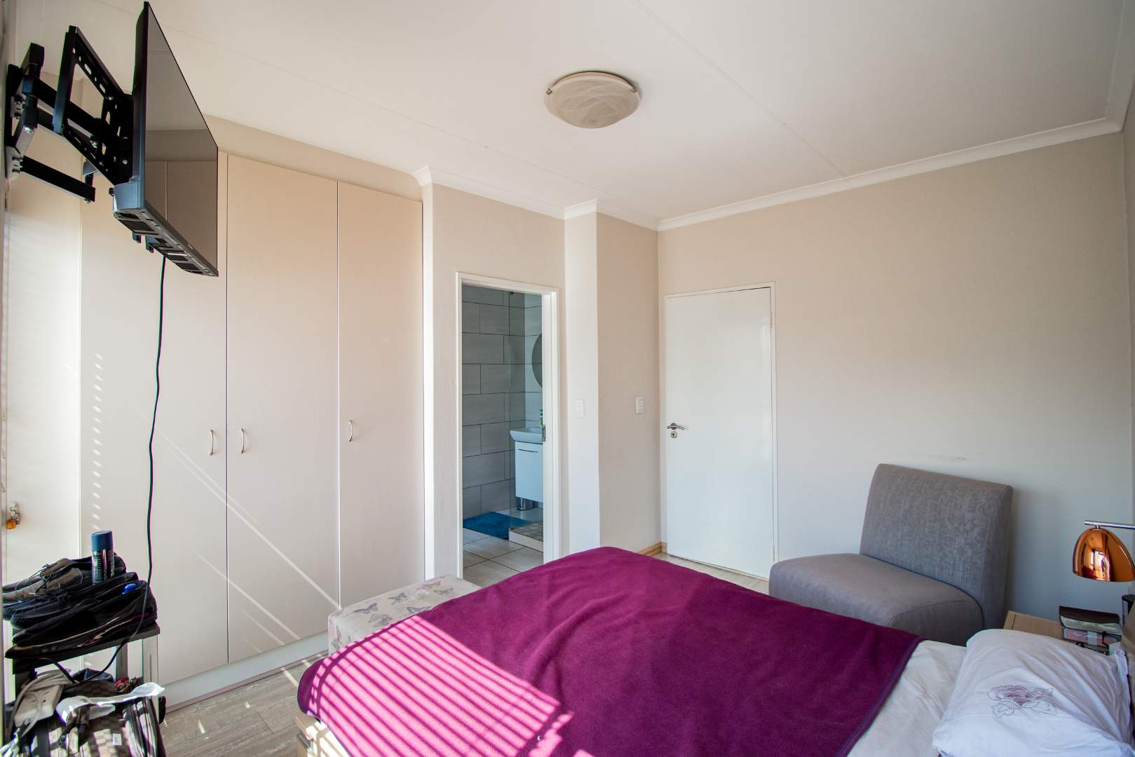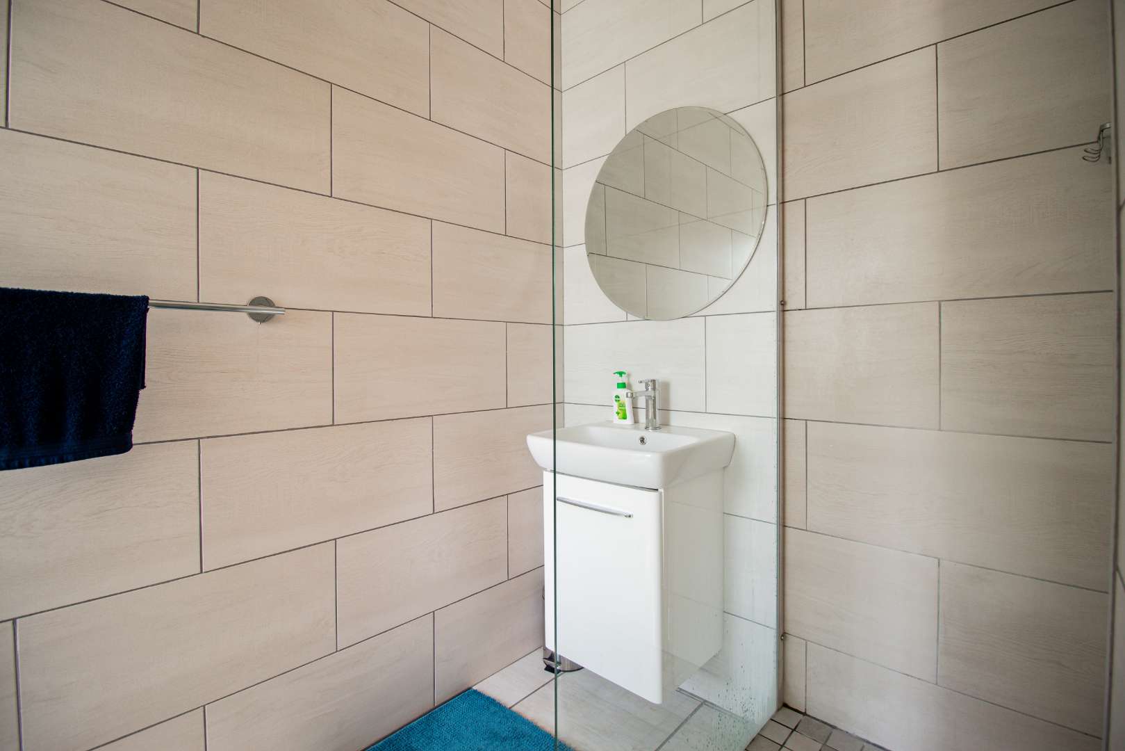 Main bedroom has laminated flooring as well as spacious cupboards, en-suite bathroom with shower and toilet and small balcony.