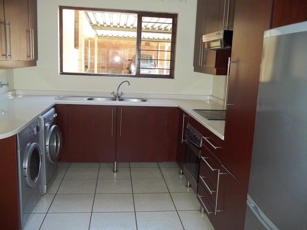 This modern 2-bedroom, 1-bathroom apartment at The Kanyin offers comfortable living in a secure lifestyle estate. The unit features an open-plan kitchen with granite countertops and space for appliances, flowing into a bright living area that leads onto a private balcony. Both bedrooms are well-sized with built-in cupboards, and the bathroom is neatly finished with both bath and shower options.