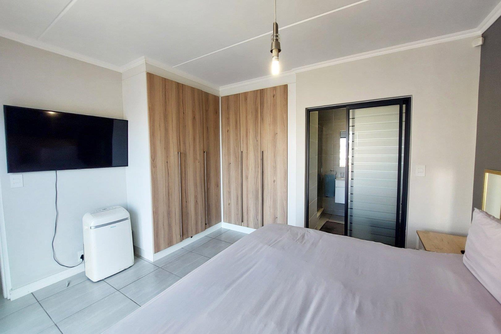 Both bedrooms are tastefully decorated and offer built-in cupboards. The main bedroom includes an en-suite bathroom, while the second bedroom is serviced by a full second bathroom.
