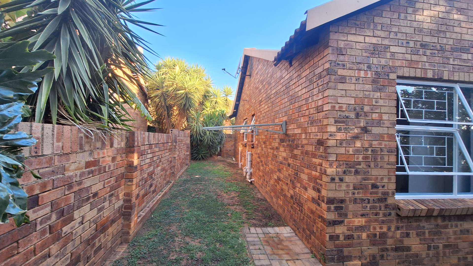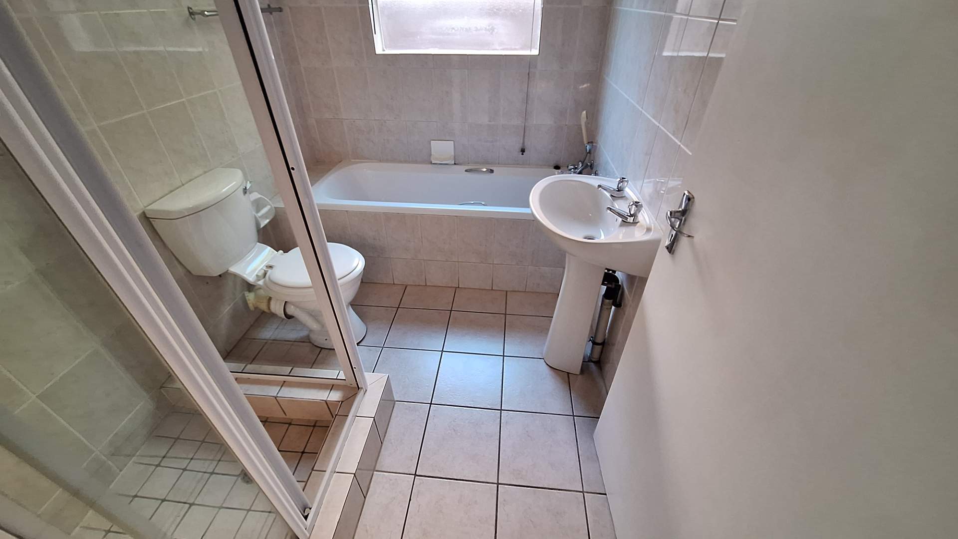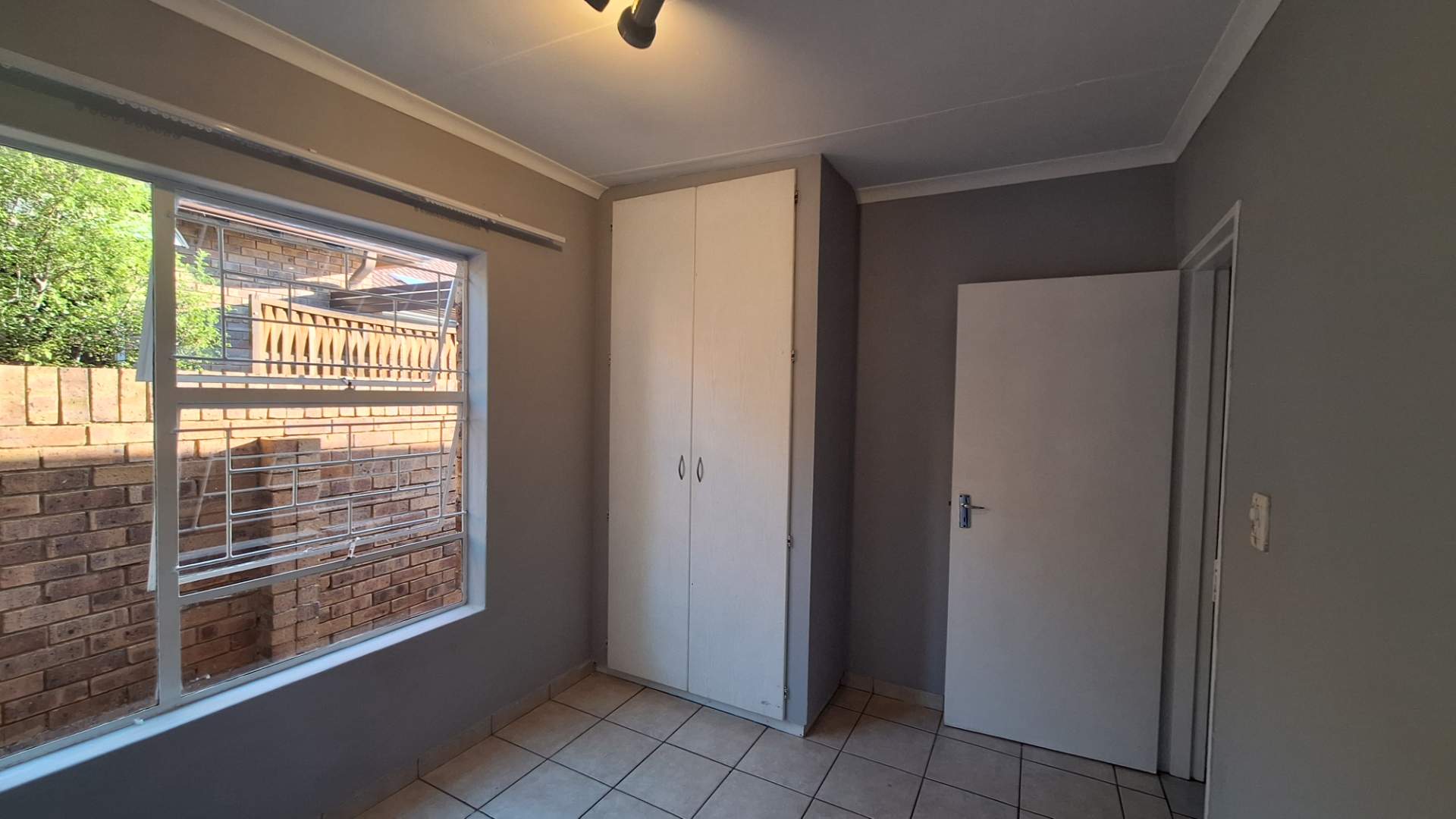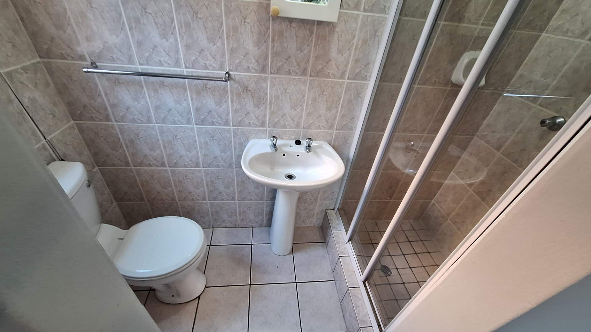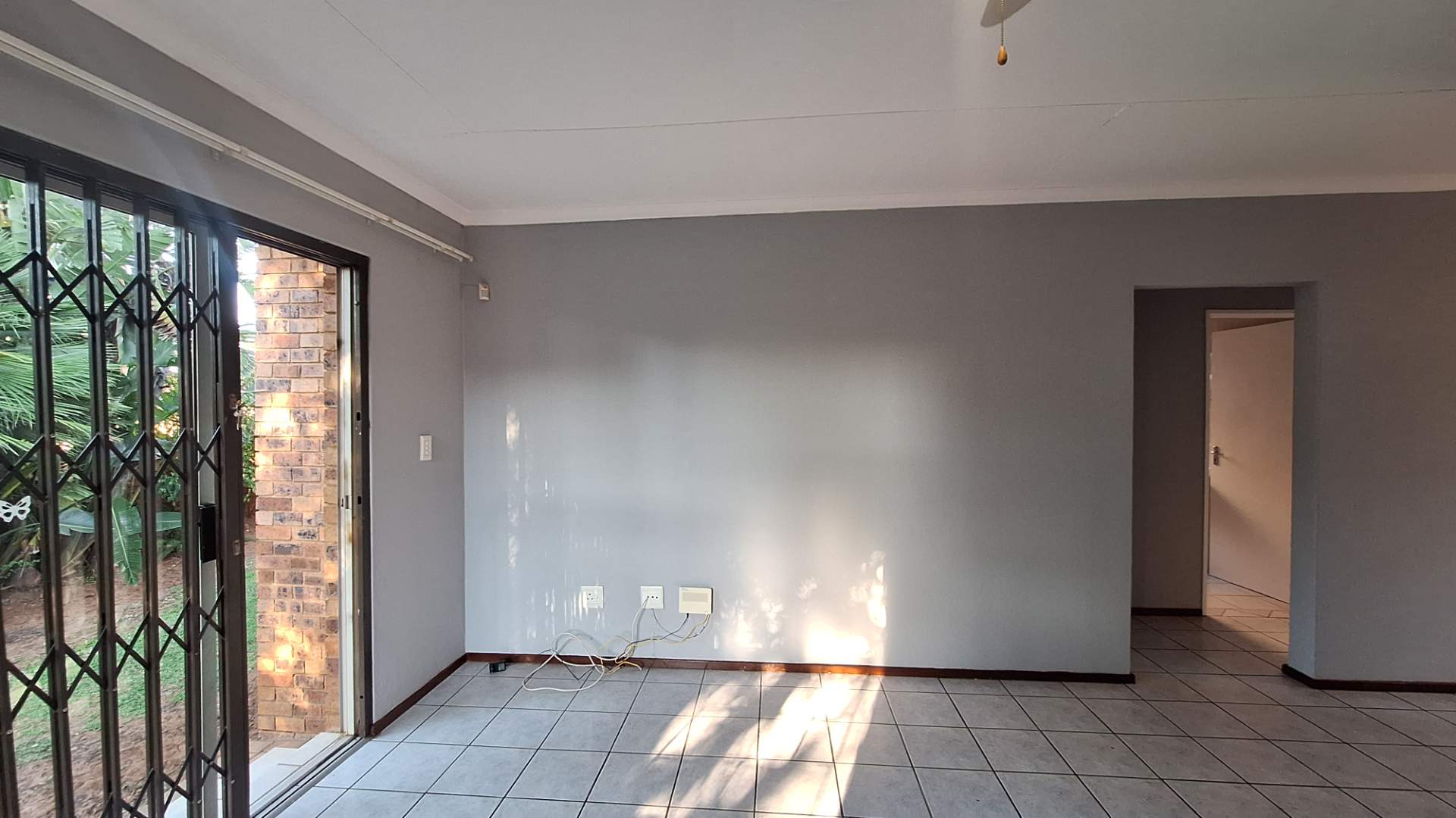 The unit is fully tiled throughout, with an open-plan kitchen and living area. The kitchen offers ample cupboard and counter space, along with a washing machine connection. Windows are fitted with burglar bars, and both the front and back doors have Trellidoors for added security.