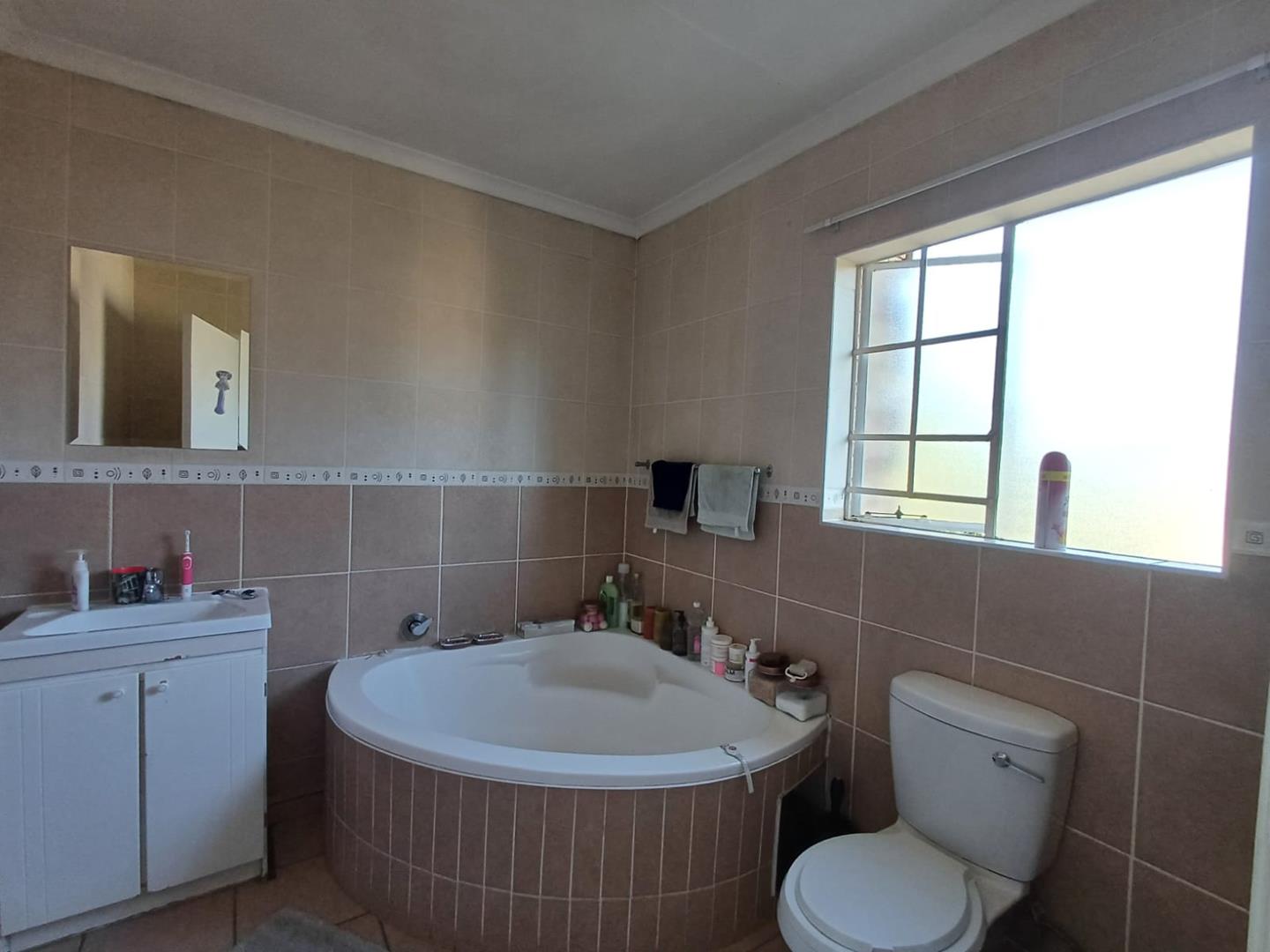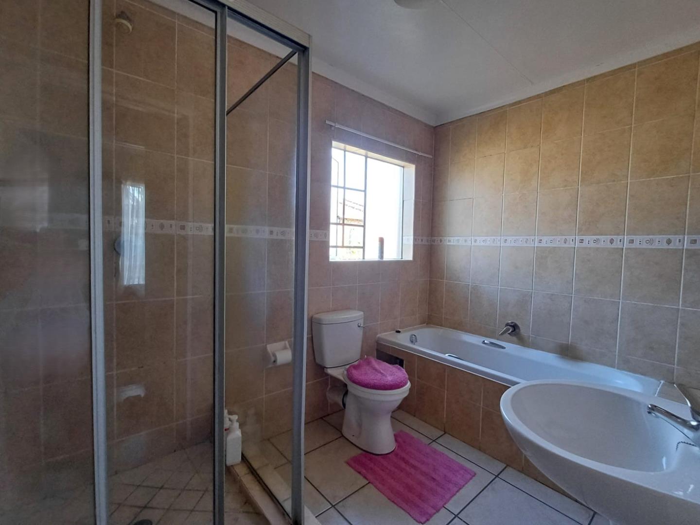 Upstairs, you will find three bedrooms, all fitted with carpets and built-in cupboards. The main bedroom features built-in cupboards and an en-suite bathroom equipped with a bath, basin, and toilet. The second bathroom includes a bath, shower, basin, and toilet, catering to the needs of the whole family.