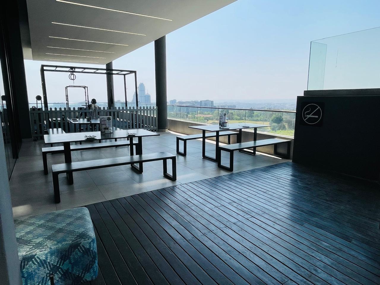 All-season pool overlooking the Sandton skyline, with bar and restaurant