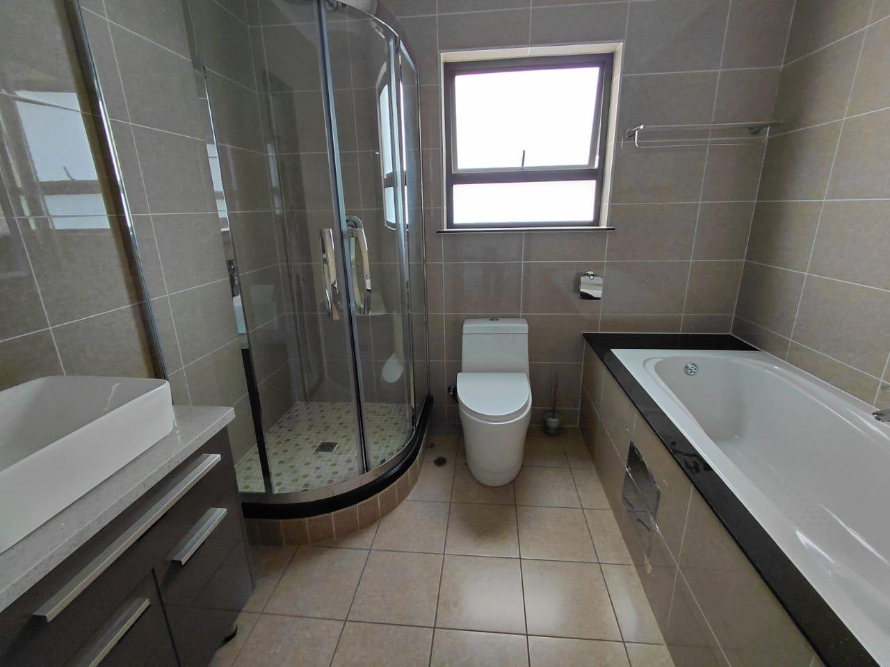 The modern kitchen is beautifully designed and fully equipped with everything you need — a gas stove, electric oven, built-in dishwasher, microwave, fridge and freezer, and an installed washing machine for added convenience. Every detail has been thoughtfully considered to make daily living easy and enjoyable.