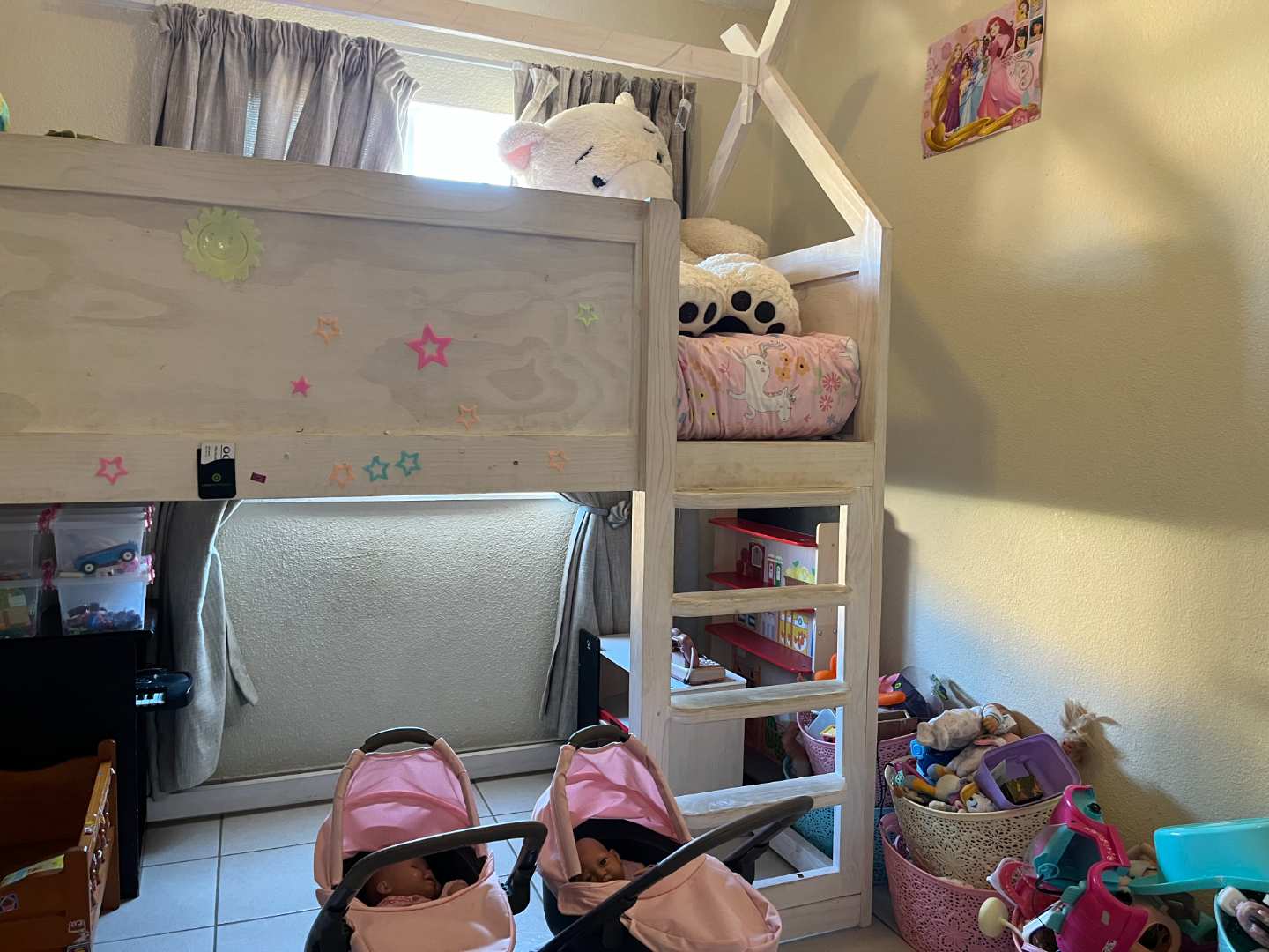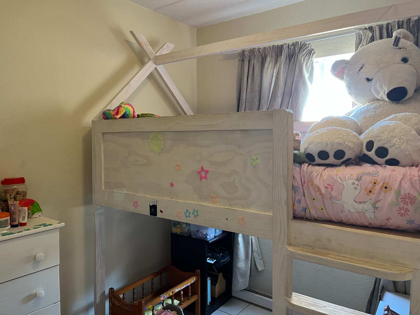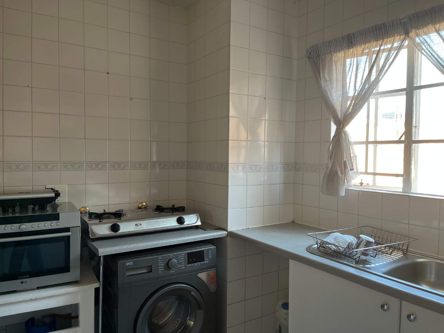 - The kitchen is equipped with ample kitchen and counter space. It has space for two water appliances and a single door fridge.