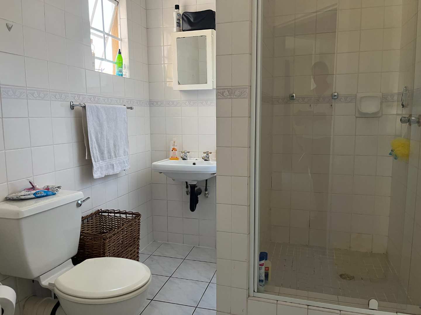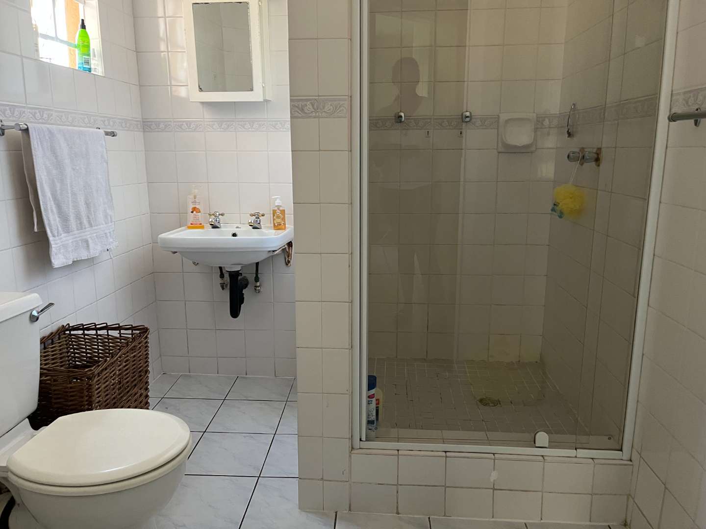 - The en- suite bathroom includes a shower, toilet, and sink.