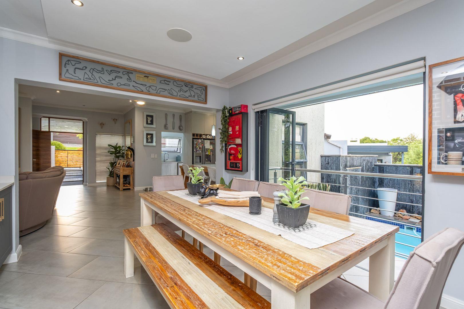 The dining room has space for an extended dining table and allows a lovely entertaining flow through stacker doors to the covered and protected patio.