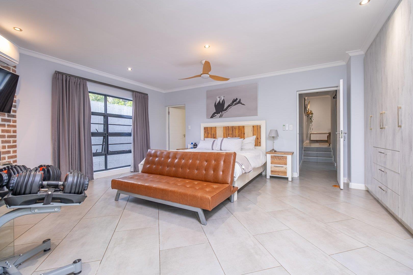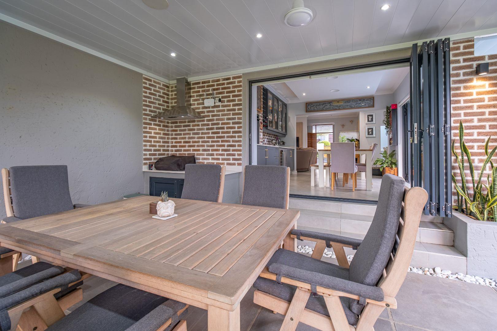 The EXTRAS in this property are almost too many to mention but include designer lighting, venetian blinds in many areas, Solar installed as an option to the buyer. There is a JOJO water filtration system for times of “drought” and fibre ready. The entertainment area has a built-in braai &stacker door overlooking the sparkling pool and a patio with endless views. This outdoor area accommodates a space for gas braai and there is a fitted extractor. Take a stroll out onto the gardens to the firepit to enjoy summer nights and starry skies.