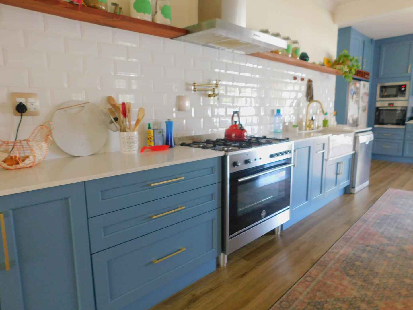The open plan customised kitchen is the heart of the home and a true highlight, boasting a gas hob with oven, and additional electric oven, a built-in microwave, and generous storage and workspace. Includes is the fridge/freezer and dishwasher. The kitchen flows seamlessly out to a spacious covered patio, perfect for entertaining, overlooking a private garden ideal for children and pets. A separate scullery/laundry offers space for two undercounter appliances, keeping the main kitchen clutter-free, with direct access to the backyard, the cottage and maids quarters.