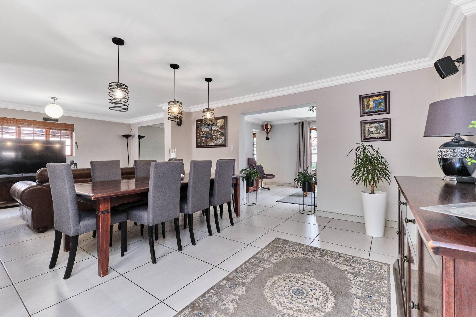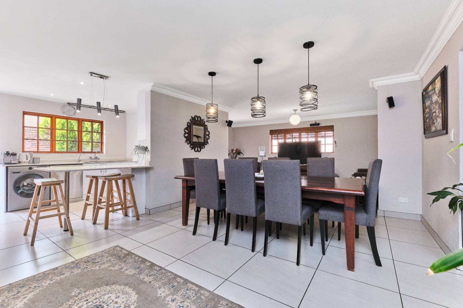 The dining room is designed to accommodate an extended dining table, making it ideal for hosting family gatherings or dinner parties. Striking feature lighting enhances the space, creating a warm and inviting atmosphere. The layout offers a seamless flow from the dining area into the bright and welcoming TV lounge, ensuring effortless connectivity throughout the home’s living zones.