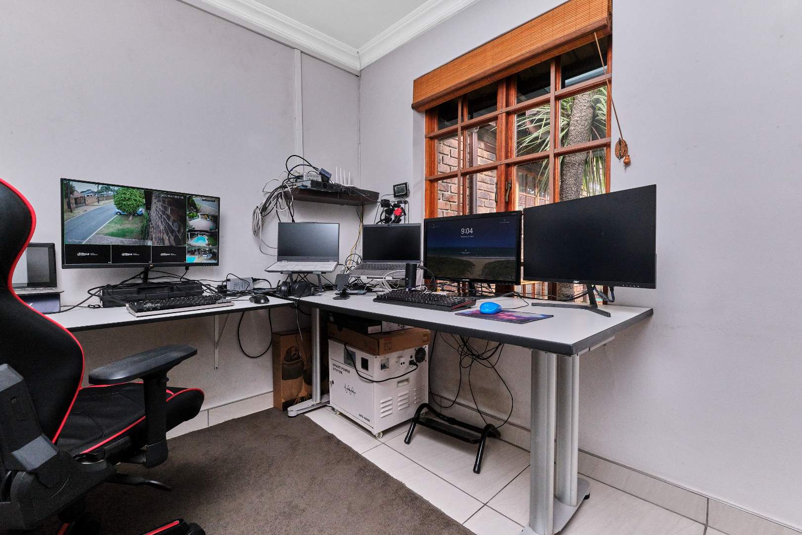 A further standout feature is the guest bedroom, which can also serve as a work-from-home office. This room is accompanied by an adjoining guest bathroom equipped with a shower, basin, and toilet. Separated from the main home by its location, it has a private entrance, making it ideal for business purposes or visiting clients. Currently, this versatile space is set up as a hair salon, fully equipped with all necessary fixtures and fittings.